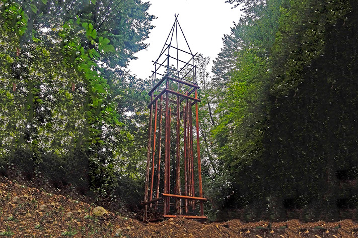 "Totem" 4,5 metri realizzato con legname reperito in loco